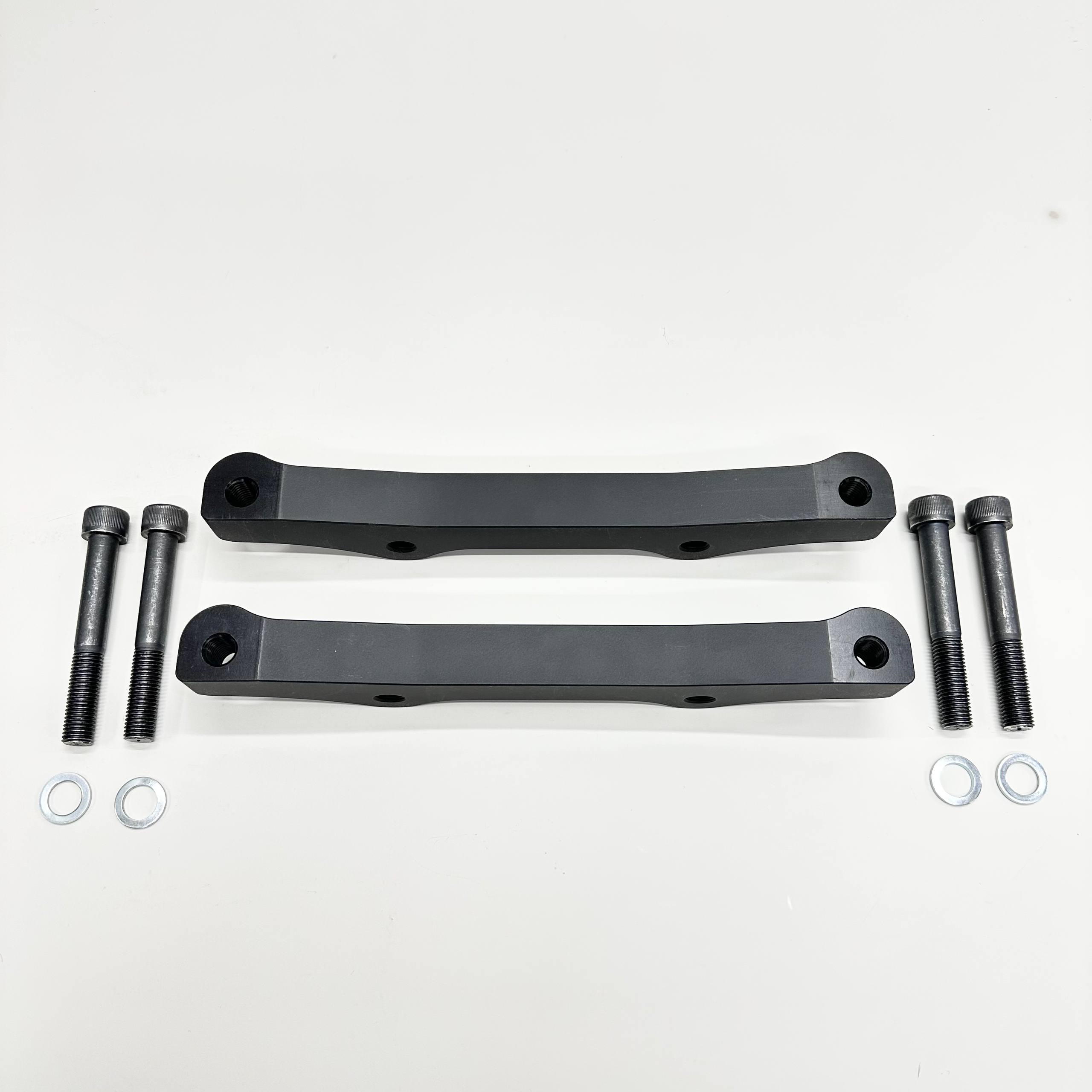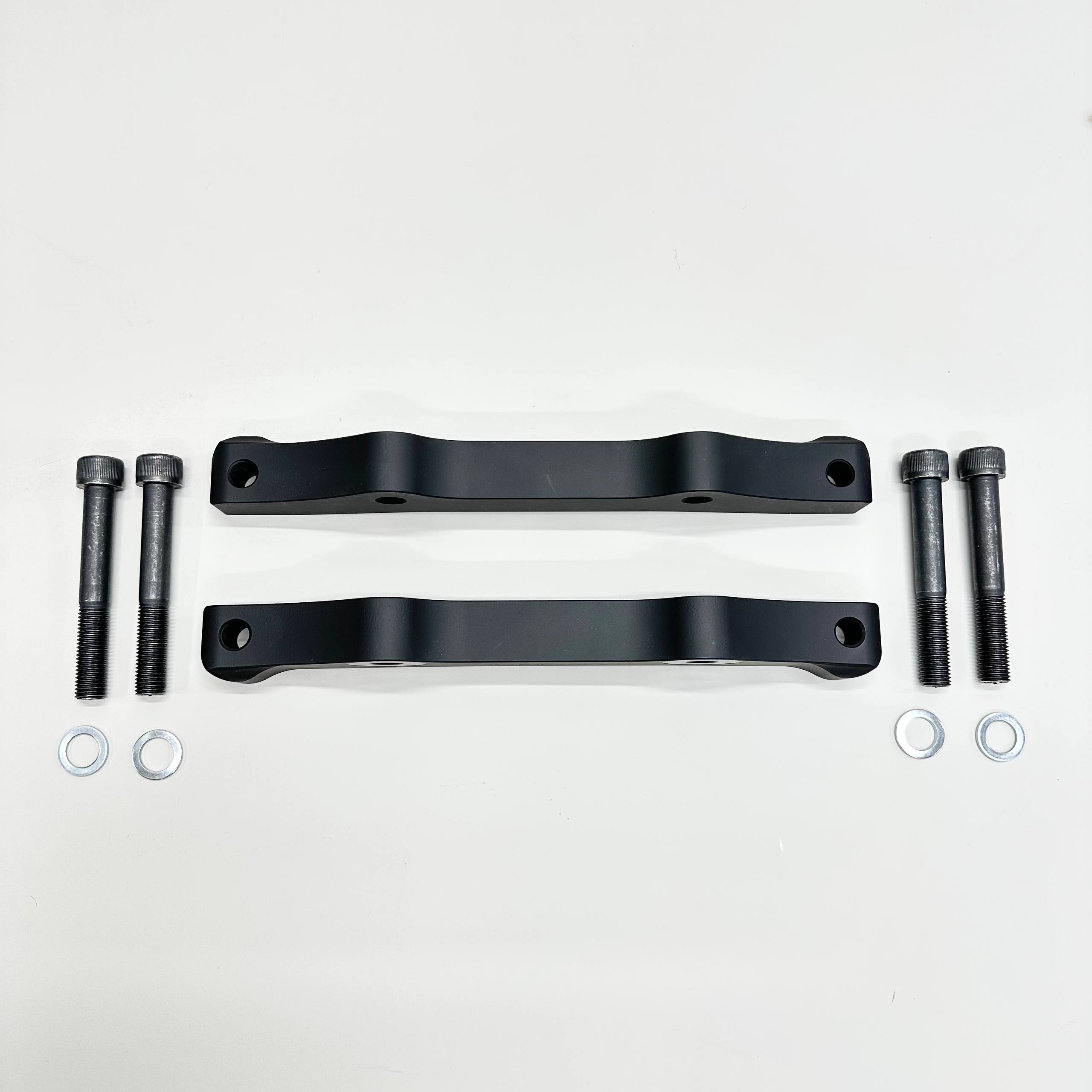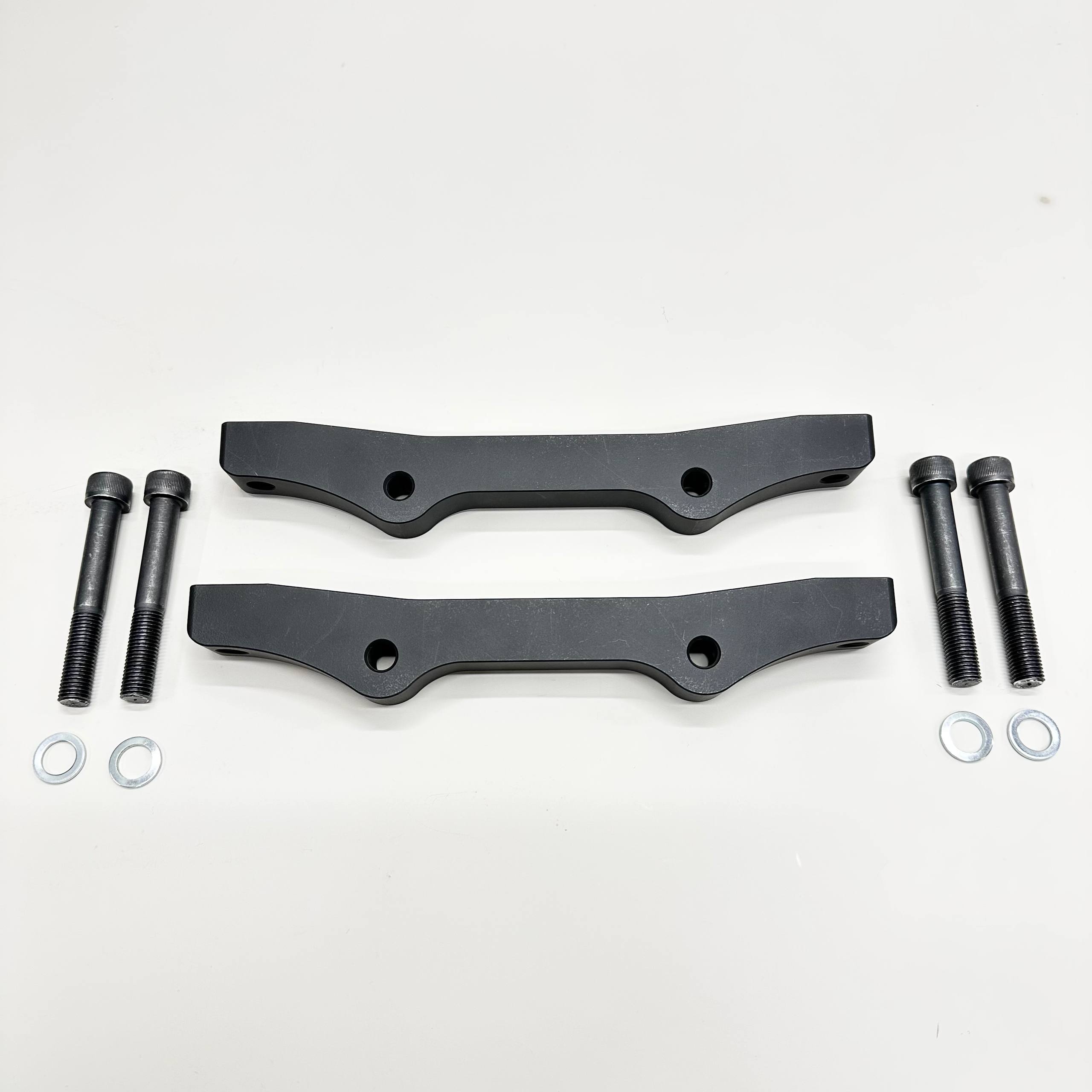 Each adapter is precision-machined from high-strength duralumin and finished with a durable anodized oxide coating for corrosion resistance and long service life. The kit includes mounting hardware with spacers, ensuring accurate caliper alignment and a secure installation.